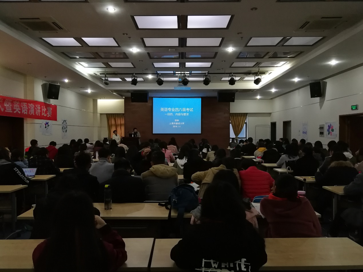 下午4:00,由院长助理范晓辉老师主持,邹教授又为专业教师和专业四、八级备考考生做了“TEM考试:目的、内容和要求”的大型讲座,她对近几年四、八级试题的考察重点和趋势、不同题型考察能力、评分细节、对学生的要求及如何准备等每一部分都用鲜活的例子与师生互动,并建议怎样从不同作答中确定最佳答案。近两个小时的讲座让师生们对四、八级考试有了更全面透彻的了解。讲座最后,邹教授对同学们提出了建议和希望,建议同学们打好扎实的语言基本功,同时加大阅读量、扩大专业知识面、开拓视野,除此之外还要提高语言表达能力以及英语的归纳分析能力。