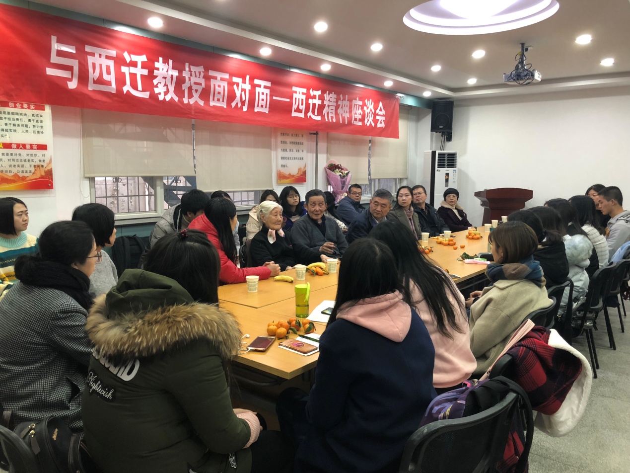 邀请本院西迁教授徐婉珠、周淼冬伉俪,在离退休处二楼会议室举行“与西迁教授面对面”西迁精神座谈会。座谈会由污污漫