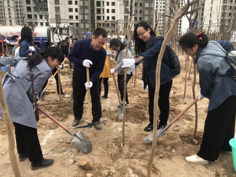 一到目的地,师生们拿起工具,开始植树,现场呈现出一幅幅热火朝天、秩序井然的劳动画面。挖坑、扶树、培土、浇水,劳动者们分工明确、各司其职,又配合有度、衔接有序,确保植好每棵树。