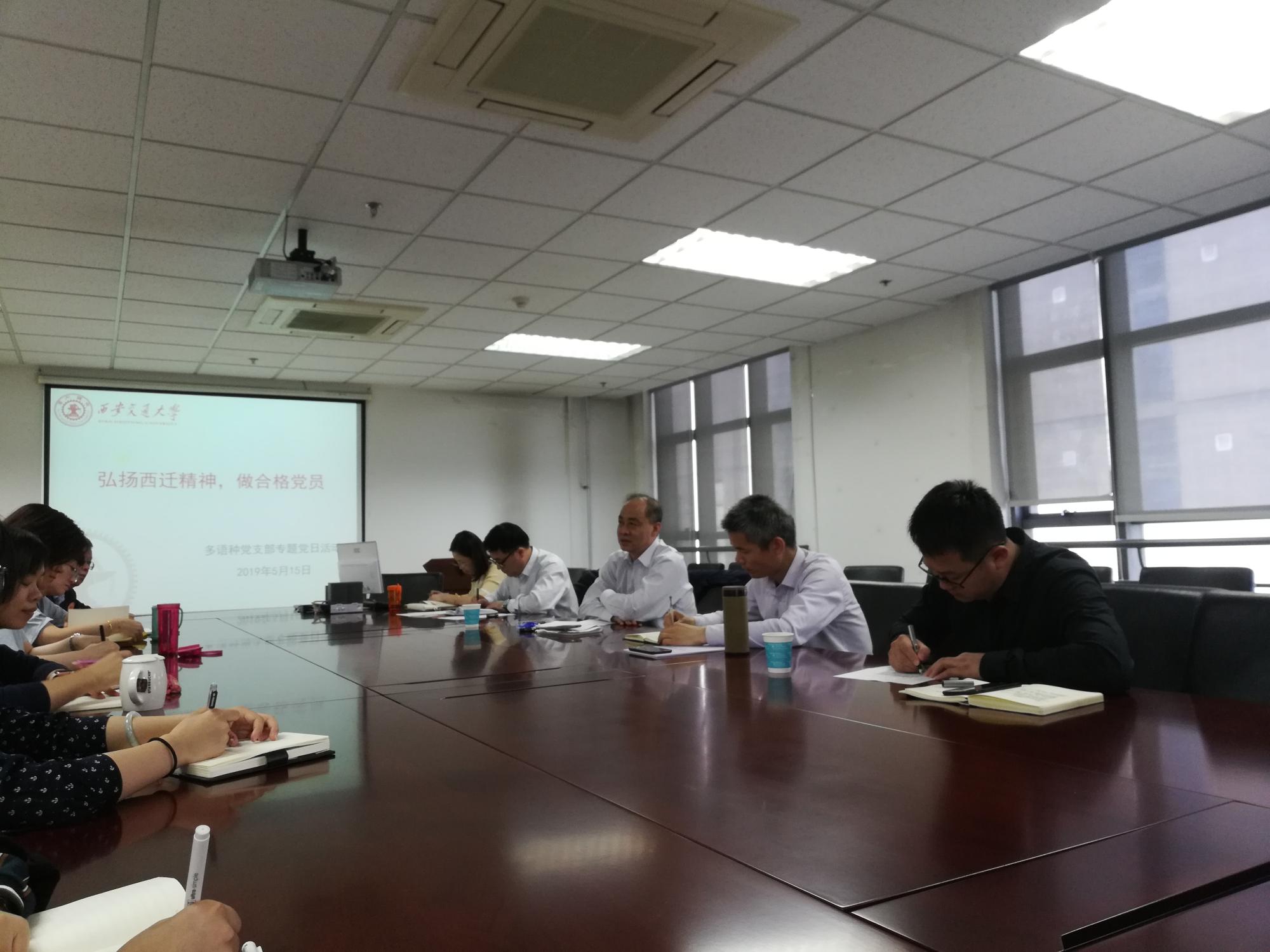 多语种教工党支部在外文楼B912会议室召开“弘扬西迁精神,做合格党员”专题组织生活会。校党委常委、副校长荣命哲出席会议,污污漫