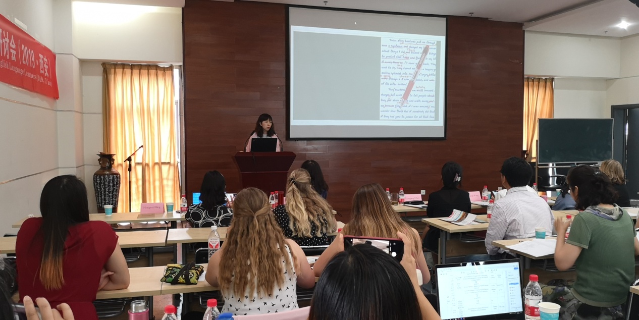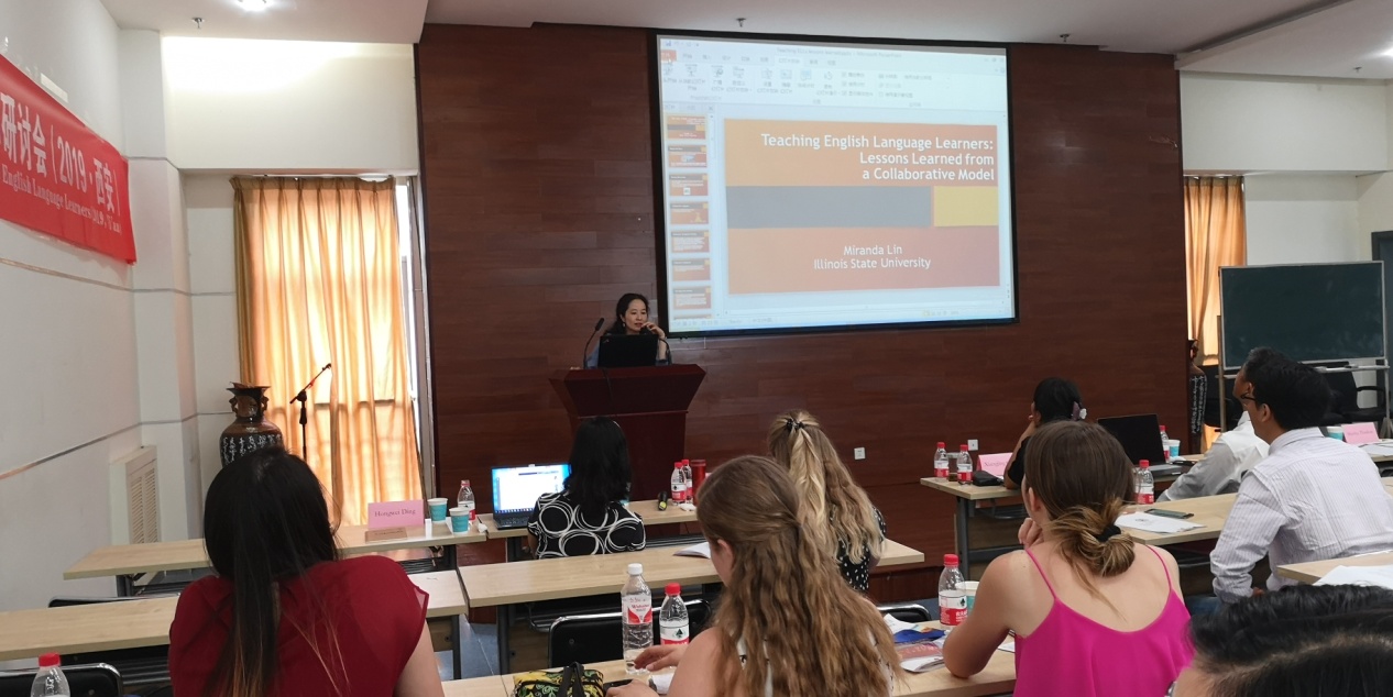 伊利诺斯州立大学教授米兰达林(Miranda Lin)教授应邀作题为“英语语言学习教学:从合作方式中得到启发”的演讲。米兰达林(Miranda Lin)教授介绍了一种三方合作的教师培养模式,在这种模式中教师们均可获益。