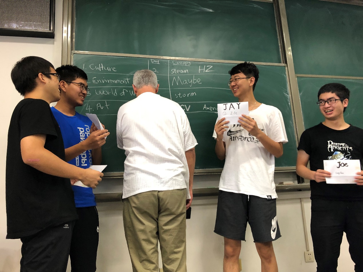在紧张的考试周过去后,我们大一的同学们迎来了小学期。在这几周的时间里,我班将与来自美国的外教面对面,用以往可能从未接触过的全新方式感受英语这门语言的独特魅力。虽然课程的正式名称是“英语能力提升”,但与这个十分正式的称呼截然相反,同学们将体验干货满满却轻松愉快的美国式教学,并通过这种交互式的教学在不知不觉中提升自己的英语实操水平,可谓是真正的“learning in playing (玩中学)”。