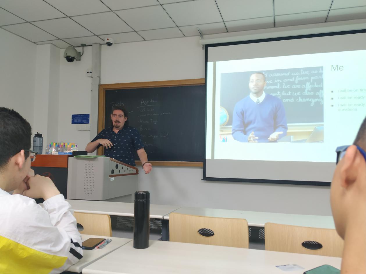 不知不觉中,小学期英语强化实践进入了第二期。第一天上课,同学们会怀着怎样的心情呢?来听听B95班李佳隆同学的描述吧:“‘绿阴生昼静,孤花表春余’,随着考试月的结束,我们步入了丰富的小学期生活。来自世界各地的外教老师如期来到古都西安,愉快而充实的英语教学拉开帷幕。这不仅是一次英语教学上的合作,更重要的是一次思维的碰撞、文化的交流,同样也是见证我们污污漫