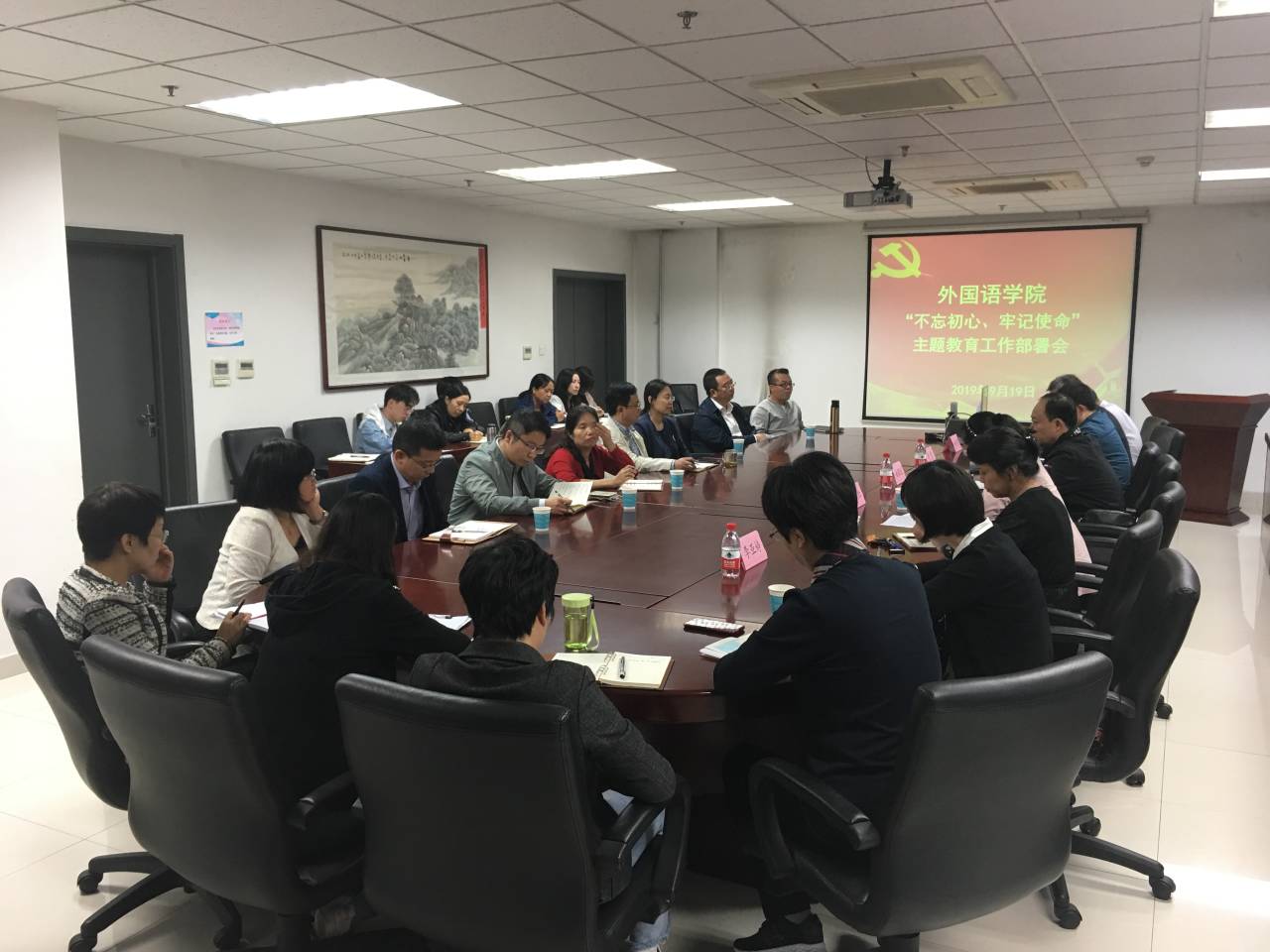 在外文楼B-912会议室召开“不忘初心、牢记使命”主题教育部署会。校党委常委、学科办主任别朝红,学校“不忘初心、牢记使命”主题教育第十三指导组组长姚耀龙,指导组成员、校党委宣传部副部长李重,联络员学科办李亚婷,以及污污漫