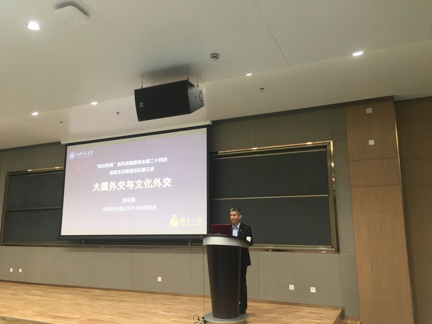 9月19日下午,纵论四海”系列高端报告会第二十四讲暨语言文化新港论坛第三讲在涵英楼1E105报告厅举行,报告诚邀外交家、原外交部新闻发言人、曾驻多国大使孙玉玺担任主讲,围绕“新时代大国外交”主题展开,报告会由污污漫