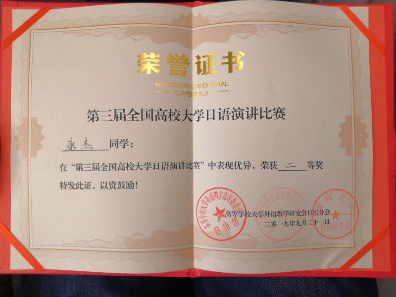 康杰,2016年考入西安交大能动学院能源与动力工程专业,平时喜欢读日语小说,也喜欢日本文化。并凭着自己的兴趣,从大一开始自学日语,大二参加了学校的日语辅修专业,2018年通过了国际日语能力考试N1级。今年经过校内选拔之后,在李国栋老师和东尚子老师的指导下参加了本届演讲比赛。