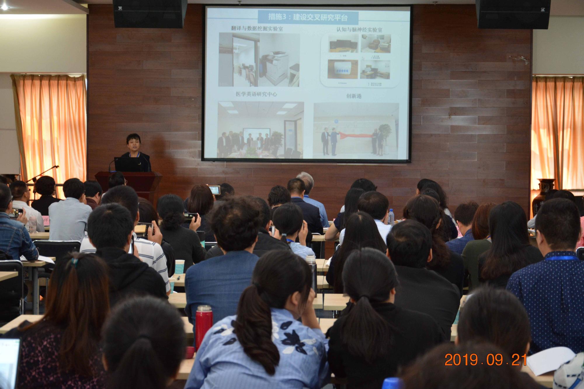 召开。医学英语领域专家学者、多位院长及系主任围绕“新时代医学英语教育与研究”主题,分享医学英语课程设置、师资队伍建设、人才培养、学术研究等方面的智慧与成果。本次论坛共有全国近70所医学院校130位院系领导和一线教师参会。