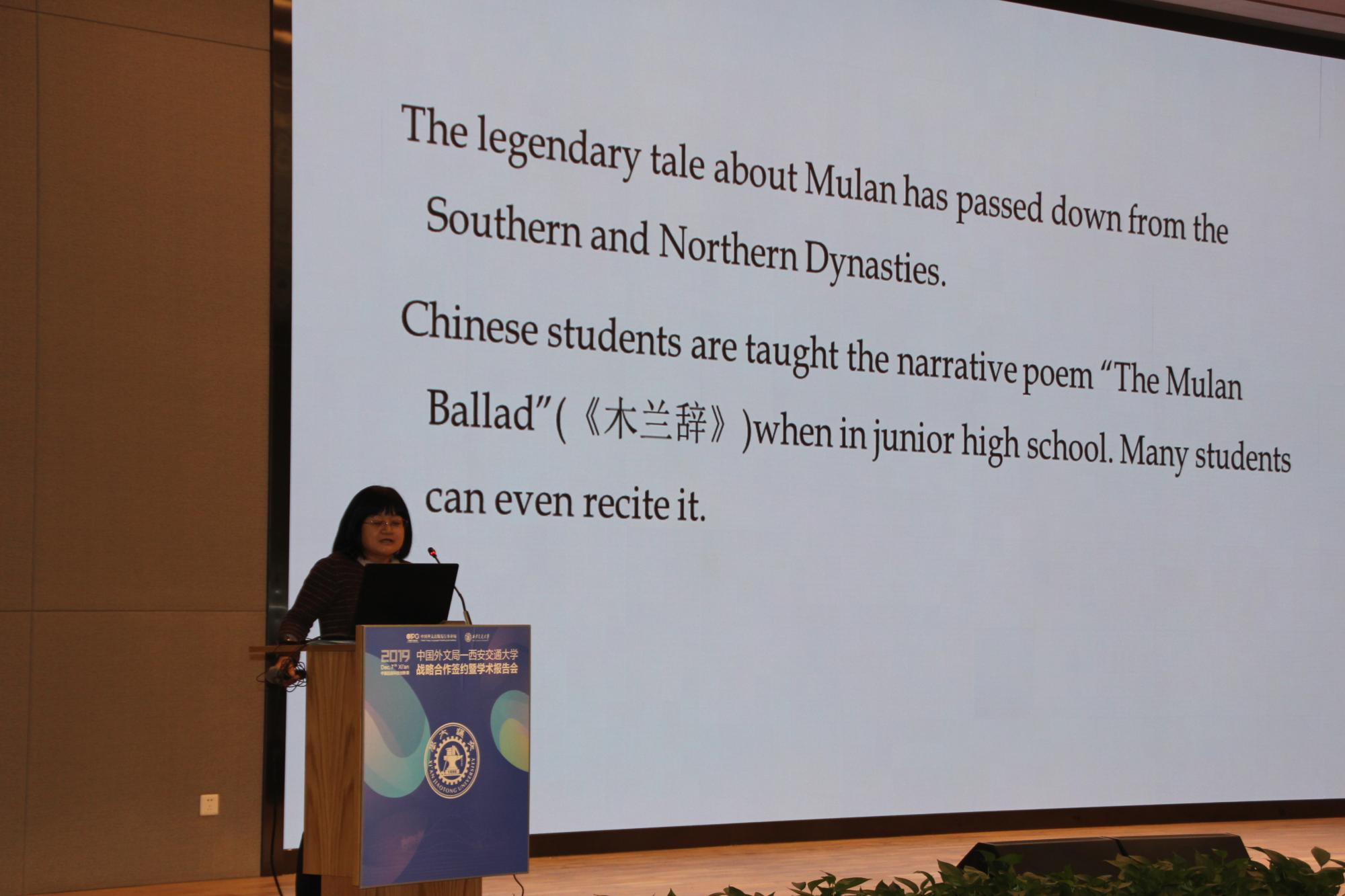 英语系杜丽霞副教授分别做了题为“基于语料库的英译政府工作报告中中国政府形象研究”以及“木兰在美国——从汤亭亭的《女勇士》到迪士尼动画电影《木兰》”的专题报告,报告由污污漫