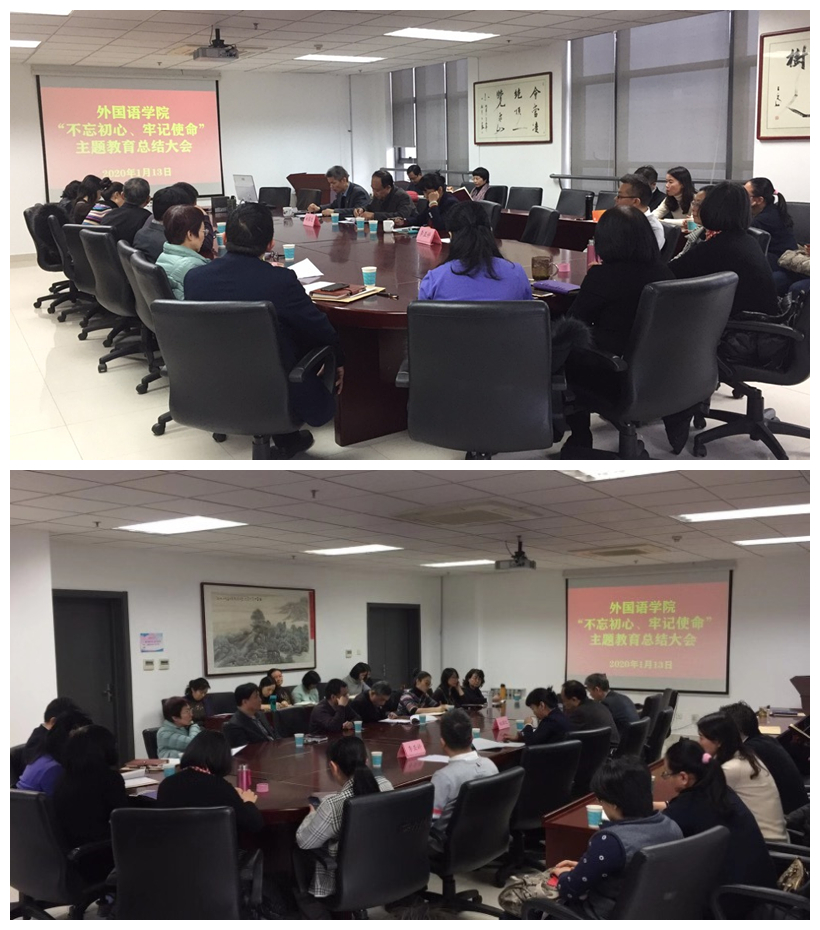 在外文楼B912会议室召开“不忘初心、牢记使命”主题教育总结会,学校“不忘初心、牢记使命”主题教育第十三指导组组长姚耀龙,学院党政领导、系(中心)主任、党支部书记参加会议,会议由污污漫