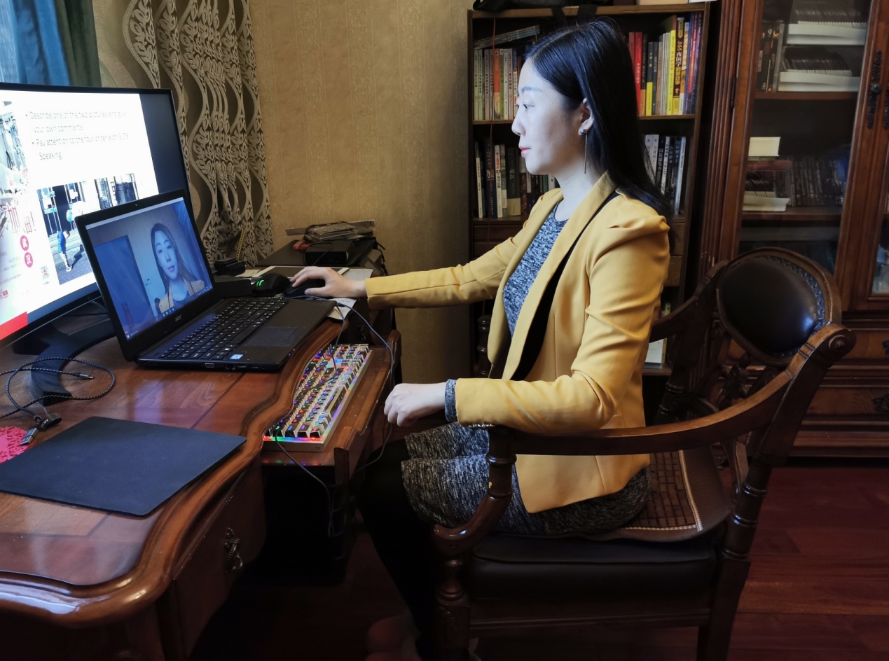 Kristen Mullen 是一名年轻的美国教师,她和丈夫Louis去年9月一起来到学院任教。疫情爆发之初,在美国的家人就要她回国,但是她坚持没有回去,后来家人一直催促,她仍然留在中国,给学生上课。开课前,她积极地和中国老师们一起测试授课软件,切磋软件用法,保证课程正常进行。同学们表示,Kristen的线上教学让大家的参与度比线下课堂更高了,课堂内容非常有趣,很有收获。