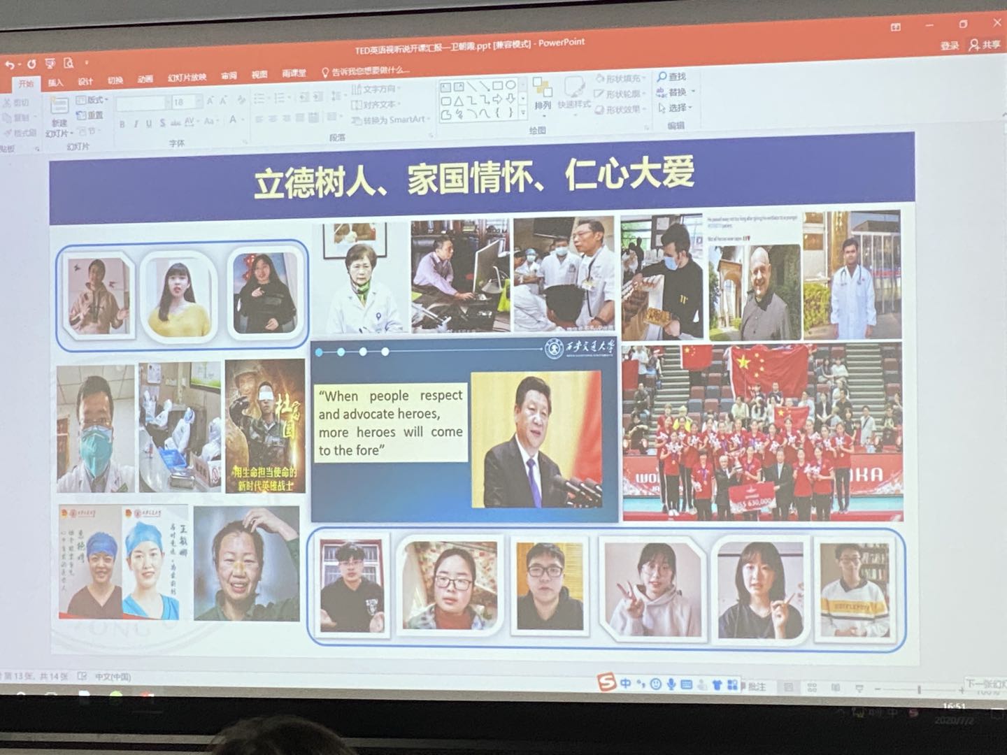 研讨会的第三部分为教学案例展示部分,三位专项课课程组长分别汇报了本课程的教学探索、创新和效果。卫朝霞副教授主要介绍了疫情期间,“TED英语视听说”团队采用问卷和访谈的方式增加师生互动交流和学生参与。作为“雅思口语“的负责人,钱希副教授介绍了该课程的总体设计理念、课程思政方面的尝试、以及第二课堂活动的开展。学生在访谈和反思日志中都表达出对该课程的认可与喜爱,80%以上的同学认为课程的教学效果非常好,表示还有继续学习的愿望。最后,“中国文化翻译”的课程负责人靳蓉副教授简单分享了该课程结合翻译实践,促进学生理解中国文化及提升学生民族自豪感和自信心方面的努力。