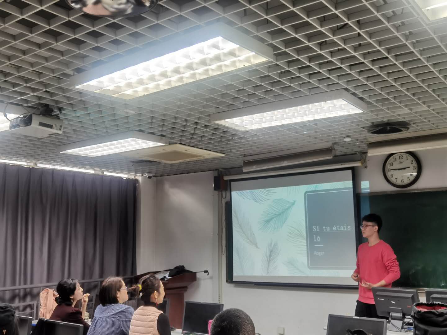 法语系在外文楼B603教室举办了金秋外语节法语演讲比赛,本次比赛同时也是外研社杯法语演讲比赛的校内选拔赛。比赛以“Si t'étais là”(如果你在那)为主题,参赛选手进行5-7分钟的演讲。演讲结束后,再由评委老师进行提问。