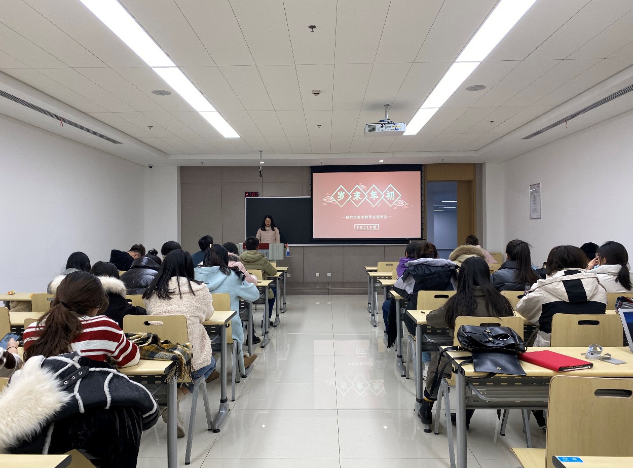 硕9109班班长周婵提醒大家在岁末年初阶段要注意身体健康,注意冬季用电安全、出行安全,防止网络诈骗,并进一步强化自己的安全防范意识。同学们还共同学习了《关于切实做好岁末年初研究生安全教育有关工作的通知》的相关指导文件,对应对安全问题的举措和技巧有了更深的了解。