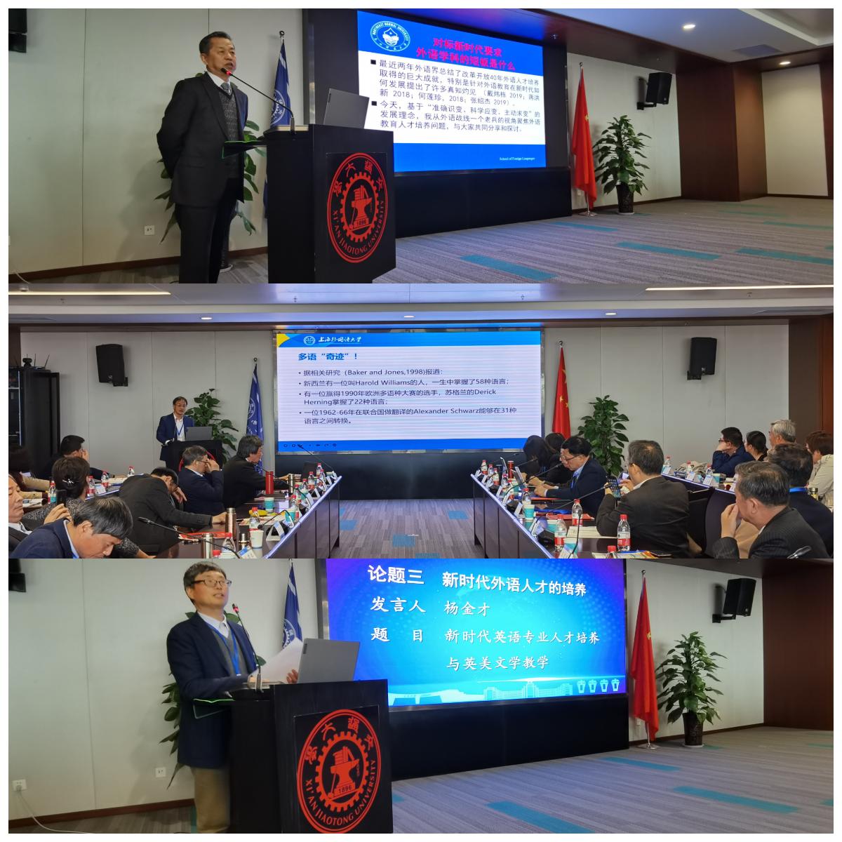 论坛第三阶段,东北师范大学张绍杰教授、上海外国语大学束定芳教授、南京大学杨金才教授围绕“新时代外语人才的培养”从人才培养的短板与补短、必要性与理想模式、新时代英语专业人才培养与英美文学教学的关系等三个方面进行了交流,引发了参会高校外语教师们的热烈讨论。