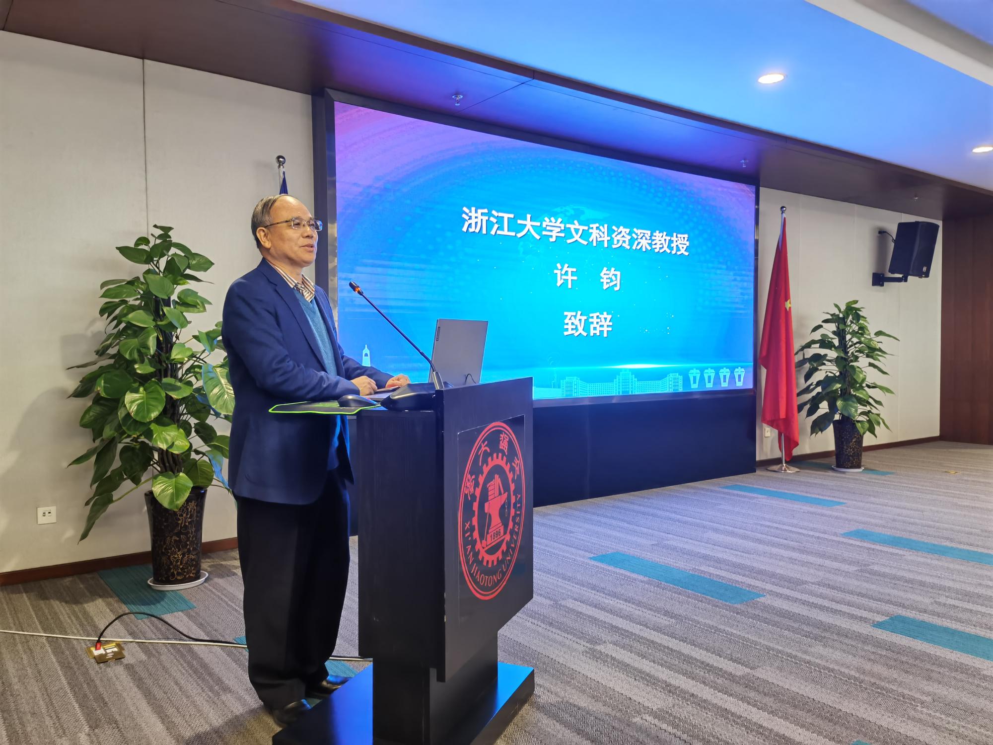 副校长席光致欢迎词,对与会专家学者及参会师生表示欢迎,表达了学校对此次论坛的大力支持,并预祝论坛成功举办。浙江大学文科资深教授许钧先生致辞,他强调了外语人应拥有坚定的信仰、正确的价值观以及鲜明的立场,为构建人类命运共同体而努力。北京外国语大学中国外语与教育研究中心主任王文斌教授致开幕辞,论坛拉开帷幕。