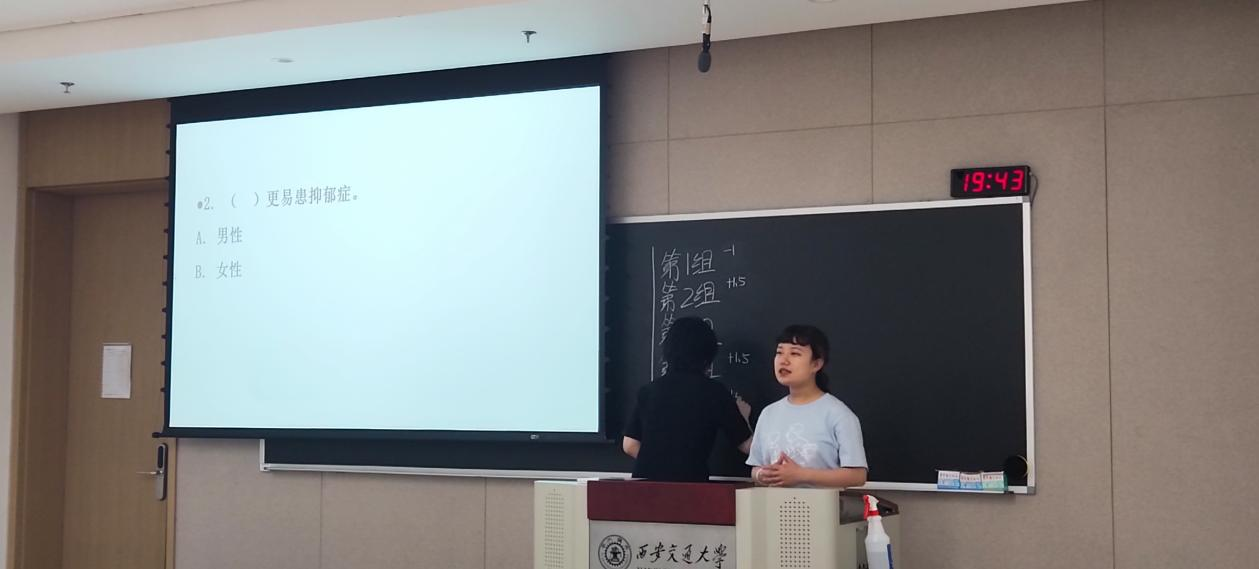 接着是心理学小知识有奖竞答环节。大家自行组队,分为五组,每组派出一名代表参与抢答。大家热情满满,积极参与其中,现场反应热烈。张新怡在负责读题的同时,也向大家普及相关的心理学常识。大家在玩中学,学中玩。最后,五名代表同学获得了解压小神器作为奖励。