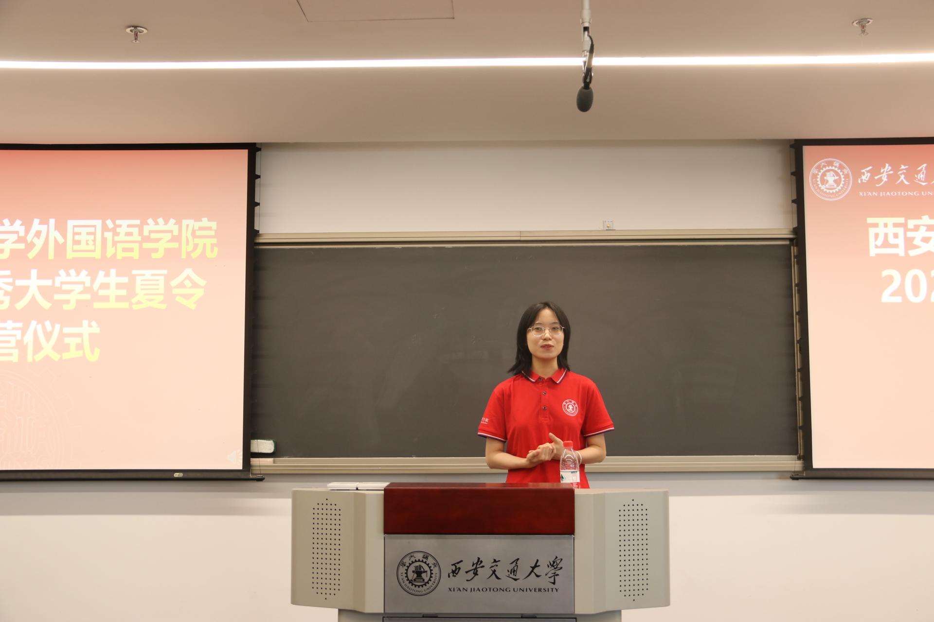 党委书记张长安教授对为期两天的夏令营活动进行了总结,充分肯定了营员们的优异表现,希望各位营员能再接再厉,并欢迎各位营员能进入交大深造学习。营员代表也发表了在港两天的生活感想。工科出身的冯姝颖同学表达了对英语专业的求学热情;姚紫芃同学对古城西安、创新港校园、污污漫
