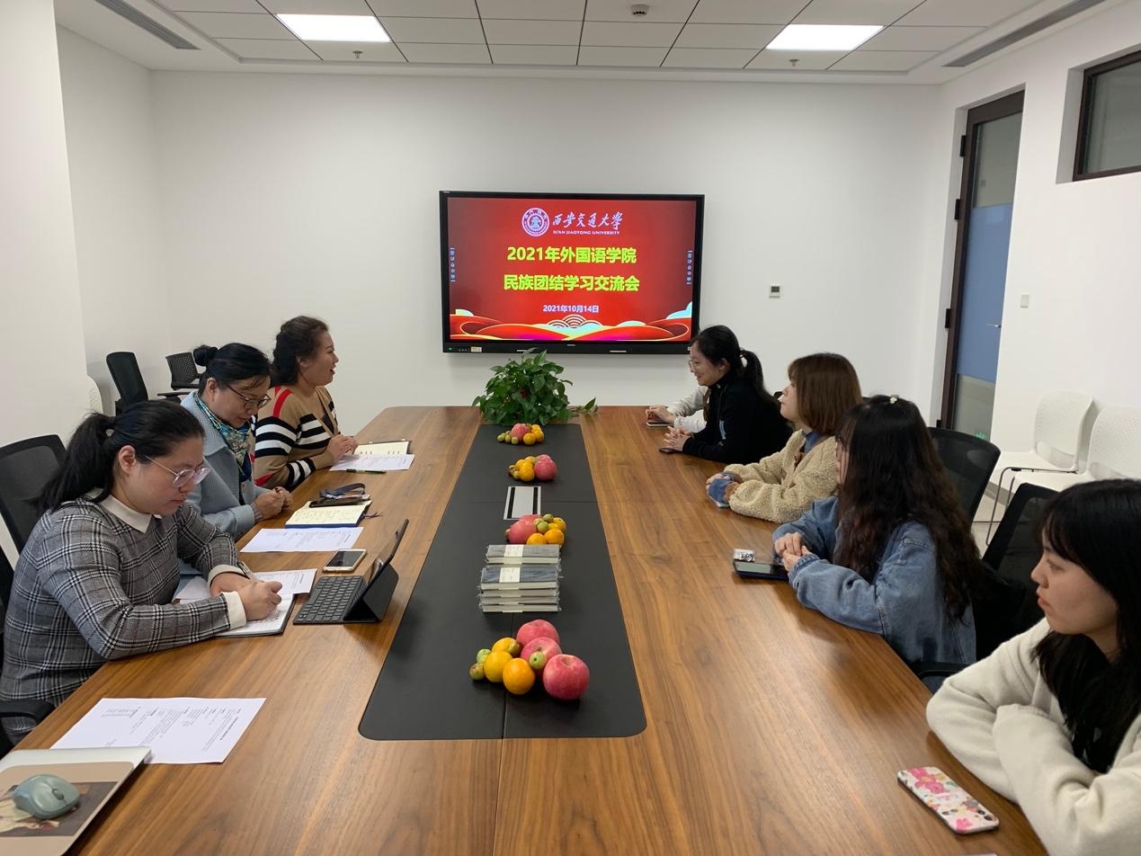 党委通过线上线下结合的方式于10月14日在涵英楼5125会议室召开“民族团结一家亲,同心共筑中国梦”主题学习交流活动,学院党委副书记许明,辅导员薛璇玑,党务秘书于丛聪,兼职辅导员吕萌和学院全体少数民族学生参会,会议由薛璇玑主持。