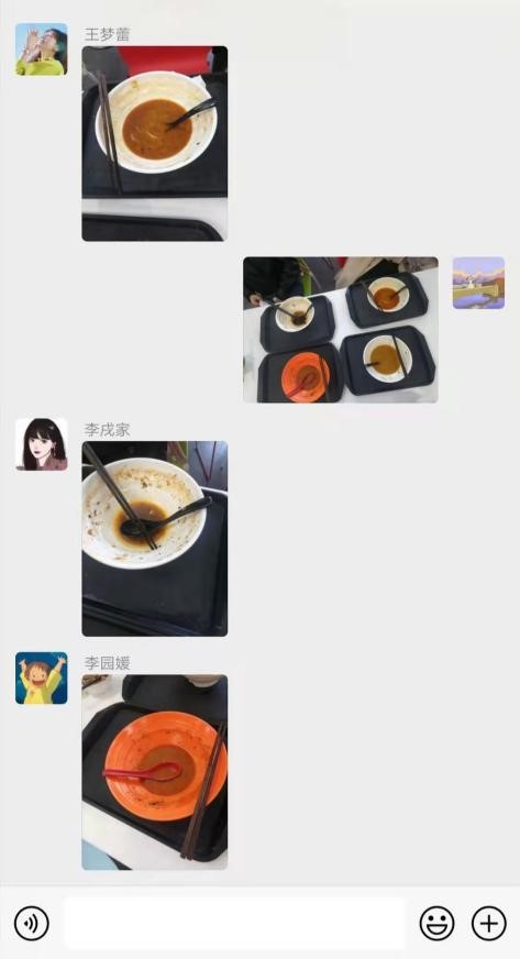 本次志愿活动结束后,同学们在服务台进行了合照,来纪念这次非常有意义的体验。同时,班级同学积极在微信群打卡,分享自己每日的“光盘”。希望通过本次最佳团日活动,能够让同学们意识到光盘的可贵,学会珍惜粮食。