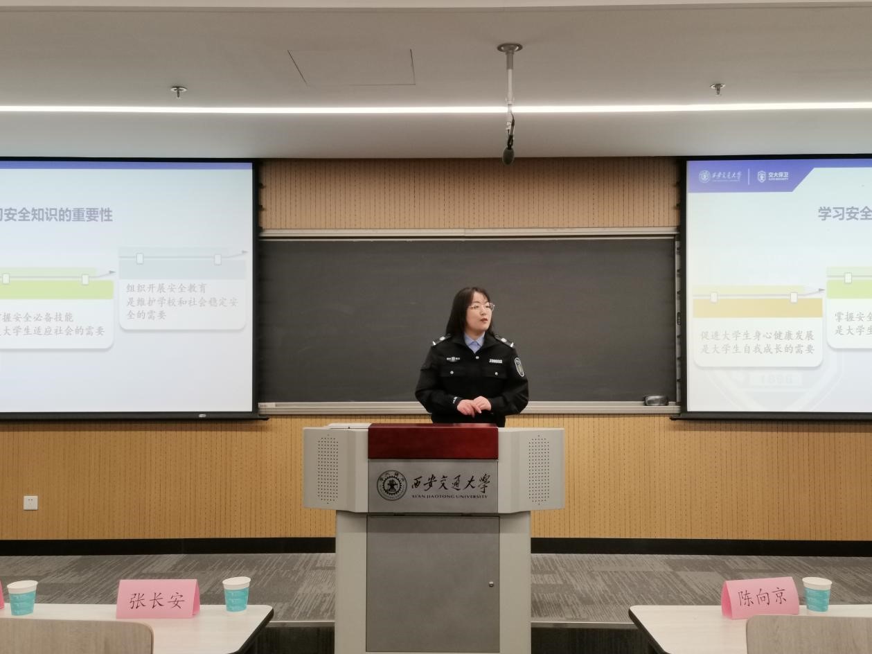 最后,保卫处陈蕾从多个方面进行新生安全教育,兼职辅导员张新怡为同学们分享诚信教育的相关内容。