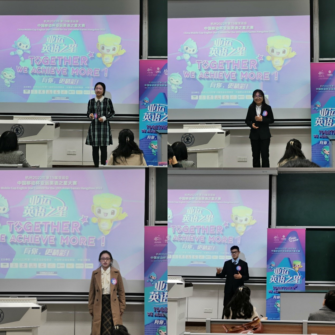 为了营造亚运氛围,弘扬奥林匹克精神,普及杭州亚运会知识,激发全社会学习英语的兴趣和服务亚运会的热情,11月19日至20日在西安交大兴庆校区举办了杭州2022年第19届亚运会“亚运英语之星”大赛污污漫