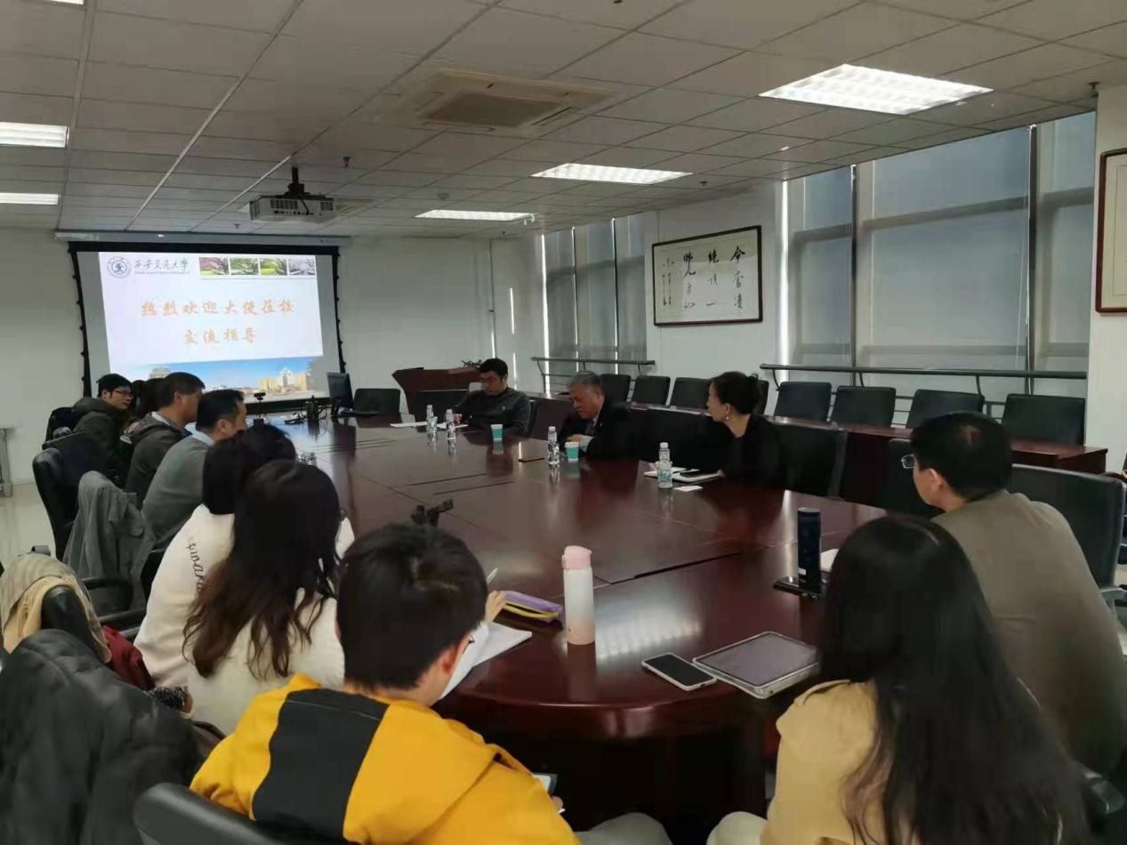 师生展开座谈。袁大使曾任中国驻印度孟买和美国旧金山总领事、驻津巴布韦和苏里南特命全权大使、外交学院党委书记兼常务副院长等职。座谈会由程冰副院长主持,北京外交人员服务局办公室主任刘志友、挂职副院长金新和污污漫