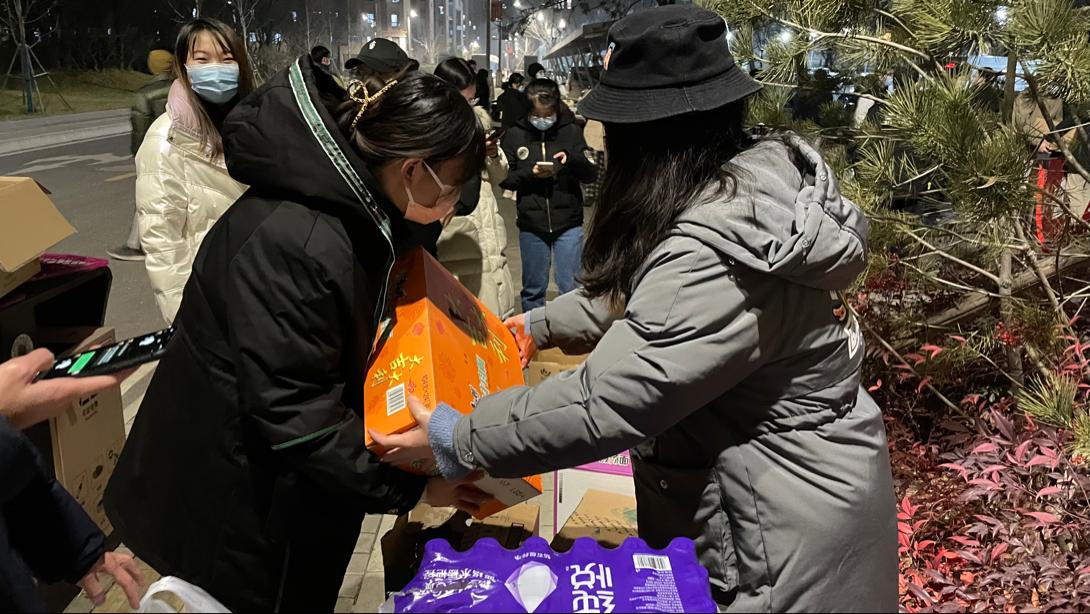 志愿者们积极响应物资搬运工作的号召,手里的小推车推的不是物品,而是满满的爱意,为物资紧缺的同学提供了一份份温暖,为外院抗击疫情的工作做出了自己的一份份贡献。在严寒之中努力做志愿的大家,就是校园中最靓丽的一抹色彩。