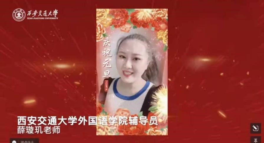 院长陈向京教授、党委副书记许明老师和辅导员薛璇玑老师通过视频为同学们送上了新年祝福。