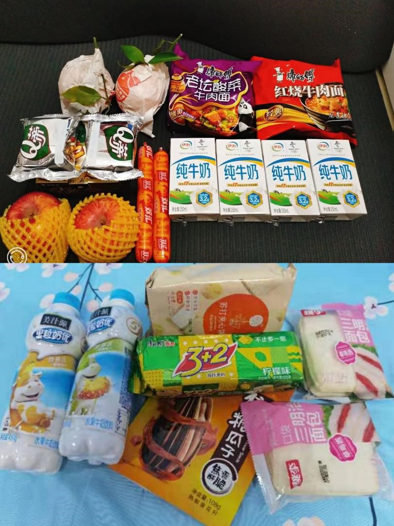 为创新港和兴庆校区的同学们送上新年大礼包,里面包含着牛奶和水果等沉甸甸的爱,党委副书记许明老师和辅导员薛璇玑老师亲自来到惠园住宿区慰问大家。兼职辅导员和志愿者同学们主动为同学们搬运物资、分装礼包,场面温暖有序。同学们在收到礼包的第一时间,情不自禁地表达出喜悦和幸福之情。
