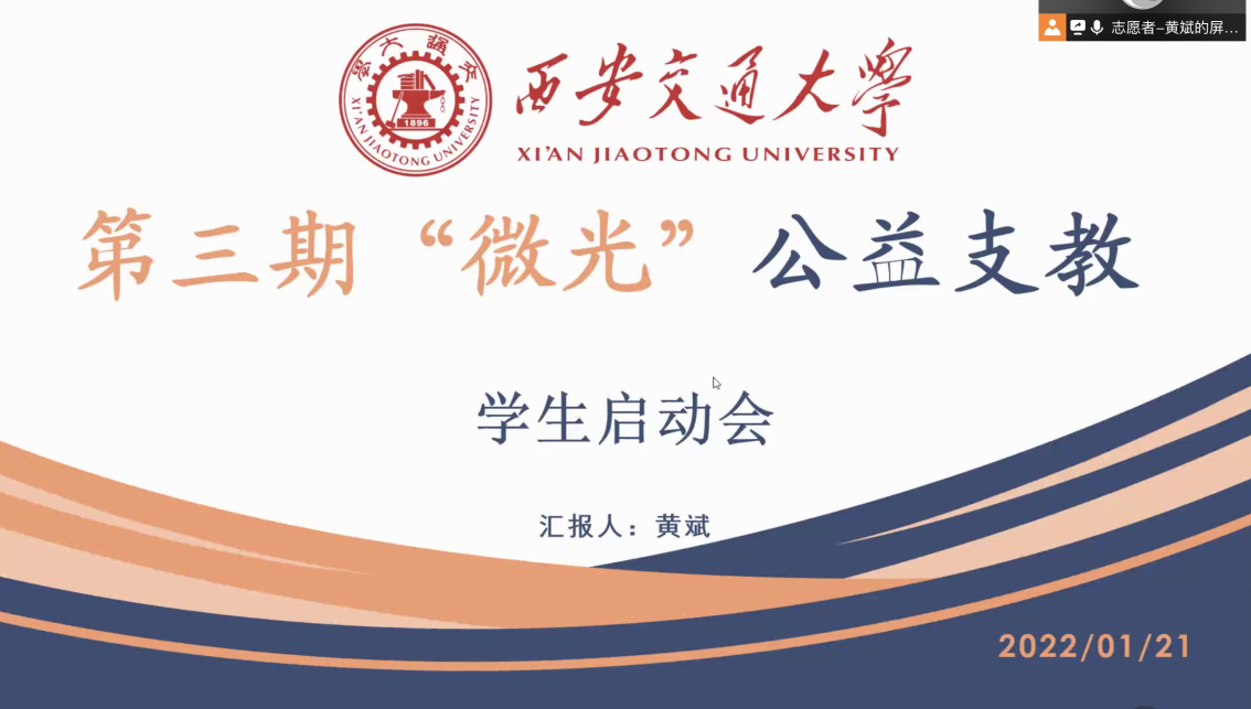 献礼建团百年,贡献青年力量,第三期“微光”公益线上支教活动于2022年1月22日正式启动,污污漫