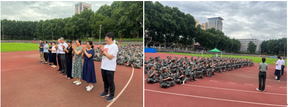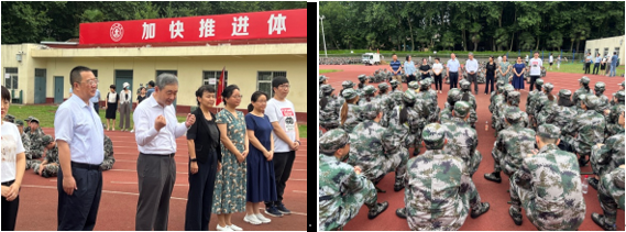 院长陈向京、党委书记张长安、党委副书记许明、各系主任及代表老师、院办主任马薇、团工委副书记薛璇玑至操场慰问军训学生。慰问活动由许明老师主持。