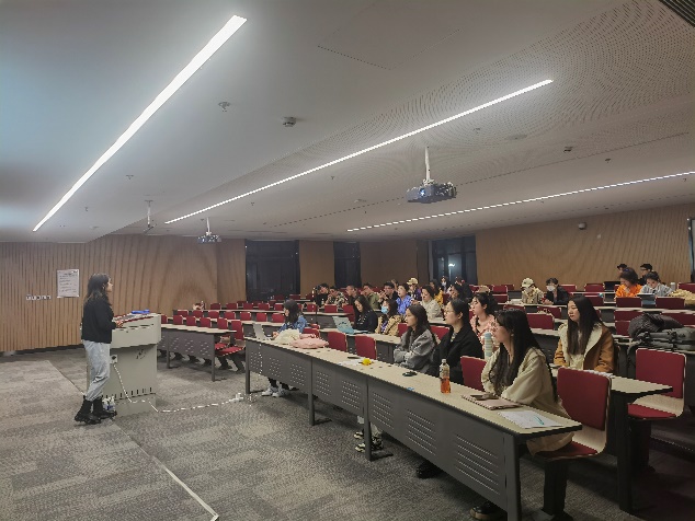 首先,宋慧萍进行分享,主要从两大板块展开,分别是企业实习与求职经验。宋慧萍介绍了自己丰富的实习和专业实践经历,从专业角度出发,列举了外语专业学生可申请的实习单位和岗位、详细介绍了实习投递的流程、企业实习的工作内容等,为同学们明确了可能的职业发展方向。此外,她还给同学们分享了许多实用的公众号和app,干货满满。第二板块宋慧萍从自己的求职经历出发,分享了宝贵的求职经验。她指出,求职是一场浩大的“信息战”,必须做好信息收集和整理、高效筛选招聘信息。最后,宋慧萍强调提前规划的重要性,建议各位同学根据自己的情况,从现在开始早规划、早打算、早准备,提前确定自己的职业目标,并为之不断努力。