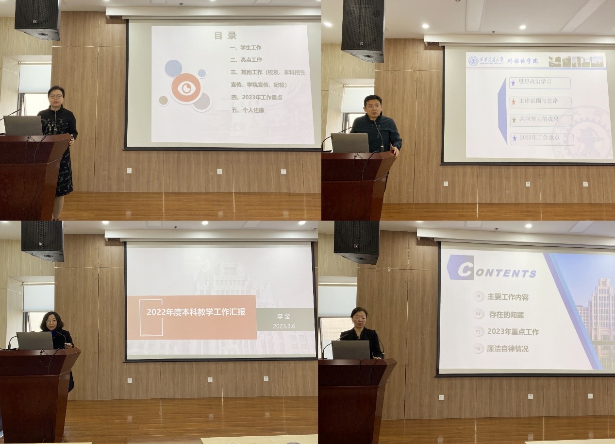 随后学院党委副书记许明、副院长王华、副院长李莹、副院长程冰分别就分管工作做了总结汇报。