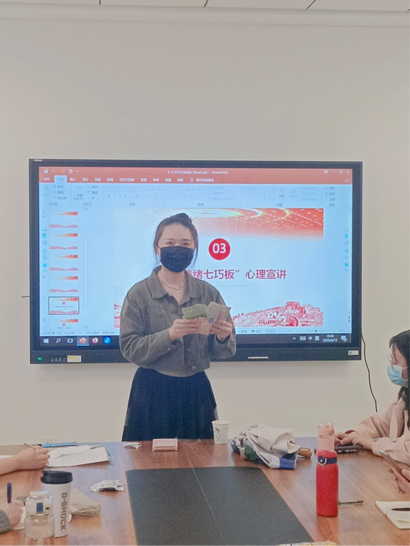 心理班会中,心理委员张春杰以“我的情绪七巧板”为主题,设计了击鼓传花的趣味小游戏。在紧张的击鼓声中,支部成员快速传递着手中的纸杯,鼓停花止,最终的幸运儿分享了近期的情绪困扰。支部其他成员积极帮助解答问题,提出了实质性的建议。大家在互帮互助中,彼此排忧解难,携手共同进步。