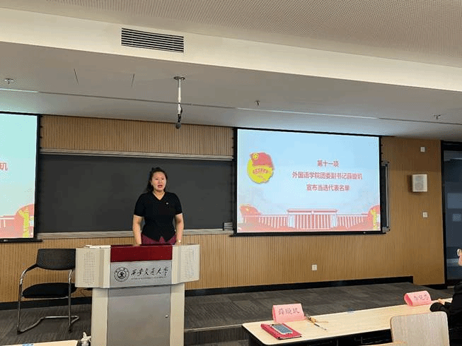 三十次团代会代表,团委副书记薛璇玑老师上台宣布当选代表名单。