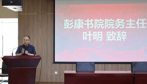 “我家洗砚池头树,朵朵花开淡墨痕。不要人夸好颜色,只留清气满乾坤。”彭康书院叶明主任引用《墨梅》一诗贯穿演讲。他首先向同学们介绍了交大独特的“双院育人”模式:学院教导专业成长,书院负责思想和生活。随后以“颜色好”激励同学们趁青春年华做到“思想活跃,学习活跃,生活活跃”,成为有内涵有思想的交大人;以“清气”比喻交通大学优秀的文化传统,倡导大家发扬爱国奋斗的西迁精神。在致辞最后,他举了两位优秀学长的例子,鼓励同学们都在西安交大的学习生活中留下自己的“墨痕”。