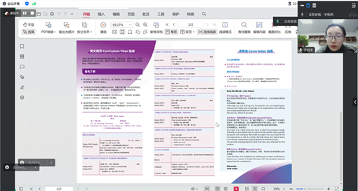 接着,于悦洋老师给大家介绍了英文求职的相关信息,包括英文简历、英文面试技巧、西方国家求职习惯等,干货满满。有关英文简历,于老师介绍了简历内容需要注意的细节、中英文简历内含的文化差异以及cover letter的必要性以及书写要求。关于求职面试,于老师以联合国的人才考核标准为例,介绍了联合国面试中必考察的核心价值和相应的面试技巧。