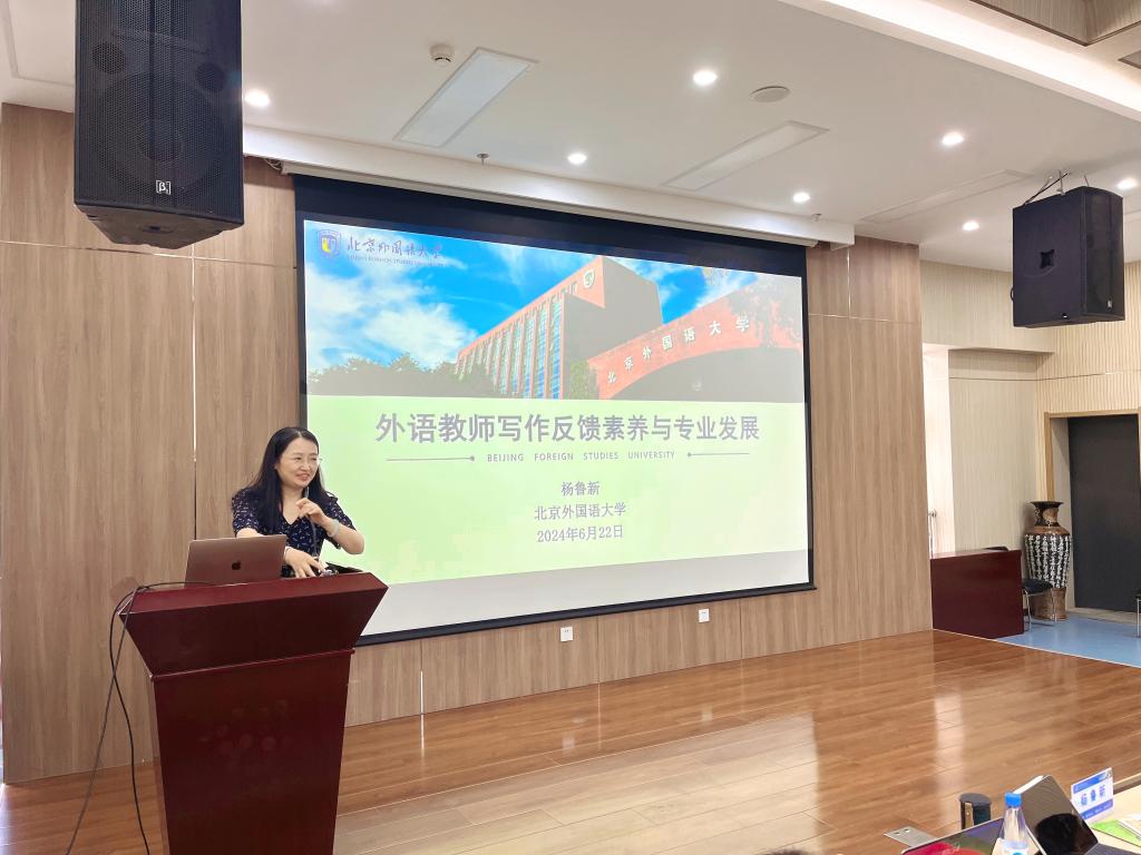 北京外国语大学英语学院副院长杨鲁新教授以《外语教师写作反馈素养与专业发展》为题作报告,杨鲁新通过实证研究展示了有效写作反馈对学生写作动机与能力提升的重要性,并探讨了如何在数智化时代背景下提升外语教师的写作反馈素养,从而促进学生的外语写作能力。她通过具体案例和数据分析展示了我国中小学英语教师的反馈素养现状,并呼吁外语教师反思并提升自身的反馈素养,以适应数字化时代的教学需求。