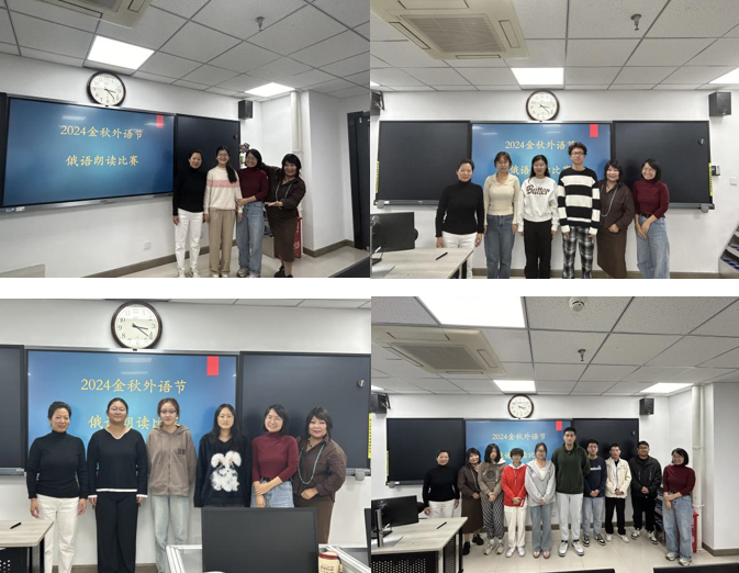 20241030日下午,第22届金秋外语节朗读大赛在外文楼B508成功举办。此次参赛的同学不仅有来自英俄 2201 班的同学,还有人文学院对俄语满怀热忱的同学。所有同学在赛前积极准备,在比赛中均大放异彩,淋漓尽致地展现出扎实的俄语功底和浓烈的俄语兴趣。
