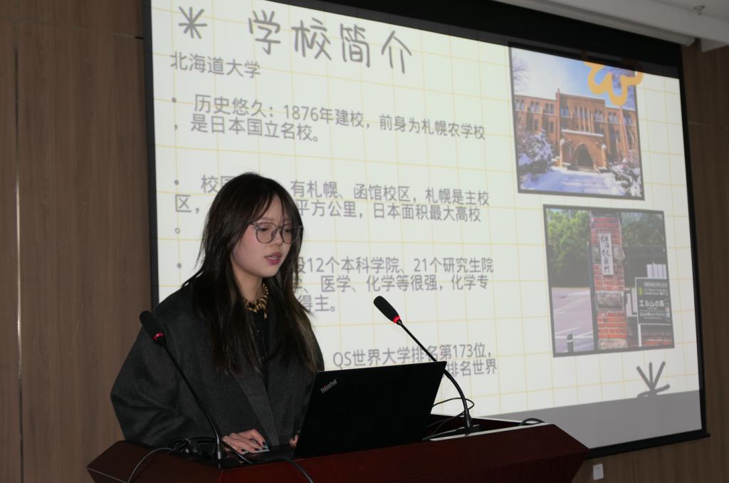 夏怡可同学全面介绍了她在日本北海道大学的交换学习经历。她详细阐述了北海道大学的教学特色,介绍了优质的图书馆资源、良好的住宿环境和便利的交通条件,以及丰富多彩的校内外活动。夏怡可分享了自己在交换学习后对未来规划的重新思考,并鼓励同学们通过留学交换项目更好地认识自我、规划未来。