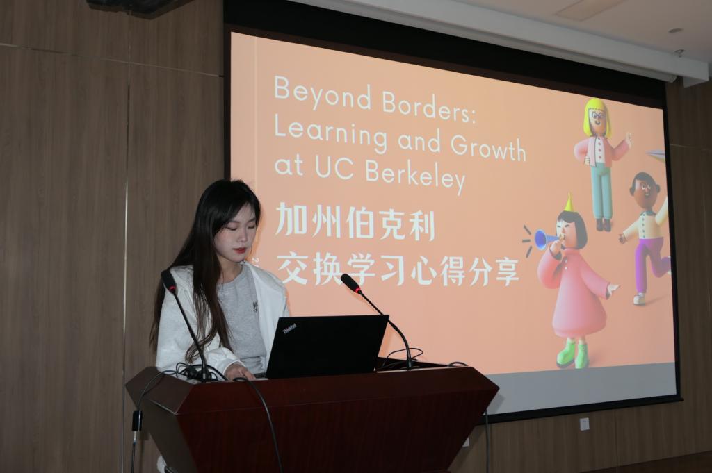 英语系楚思齐同学分享了她在美国伯克利大学的交流经历。她详细介绍了该项目的课程设置、特色校园活动以及当地的文化体验,如话剧、摄影、艺术展等。她分享了在伯克利的交换生活中,如何以热情与勇气拥抱无限可能,并鼓励同学们勇敢突破舒适圈,体验充满机遇与挑战的旅程。