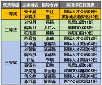 英语演讲大赛决赛圆满收官。经过激烈角逐,比赛最终决出一等奖2名,二等奖4名,三等奖8名。