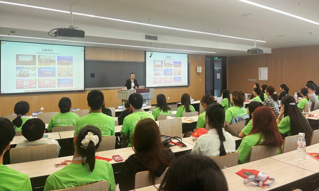 陈向京在致辞中对2025级研究生新生表达祝贺和欢迎,启发新生思考形容所学专业的词汇,向新生介绍学院外语学科建设发展的“差异化”“国际化”特色和近年来在人才培养、科学研究等方面取得的可喜成绩,并指出在学校的大力支持下,学院不断加快省级重点实验室、专业智慧教室建设进度,为研究生在校学习、科研和实践锻炼提供优质资源,希望全体新生尽快适应研究生阶段的学习科研节奏,展现外语青年的独特优势,在与学院持续“双向奔赴”中持续加力,共同为学院建设和个人发展创造更广阔的平台空间。