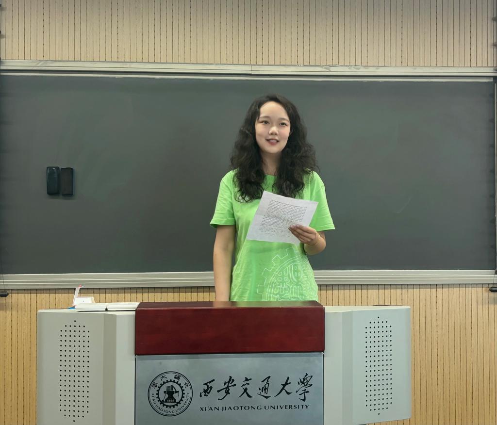 2023级硕士生王嘉慧作为高年级研究生代表,分享了个人读研期间的学习体悟,鼓励新生珍惜在交大校园的求学时光,积极尝试、主动交流,结合个人实际尽早确定职业发展规划,做到情绪自洽,平衡好科研学习和日常生活。