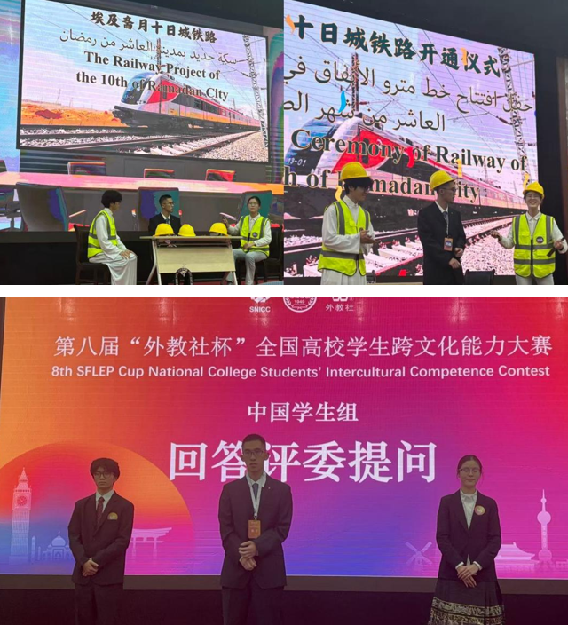 代表队紧扣“一带一路”倡议背景,以中国援建埃及“斋月十日城”铁路项目为题材,生动讲述了中埃两国在合作进程中文化交融、民心相通的感人故事,深刻诠释了中华民族包容、守信、合作与奉献的精神品格。选手们在场上理论扎实、逻辑清晰、语言流畅、配合默契,其卓越表现赢得了评委的高度认可,充分展现了污污漫