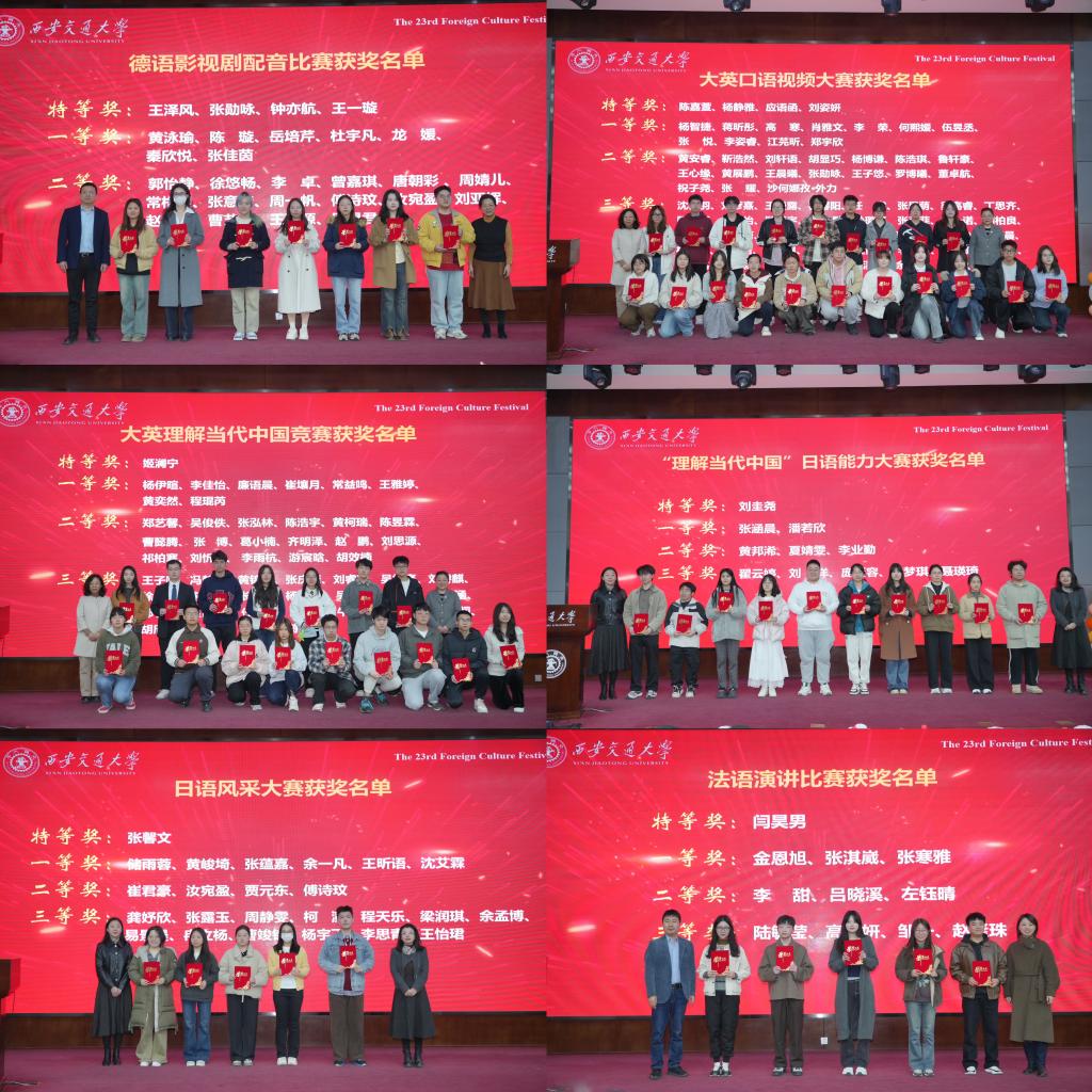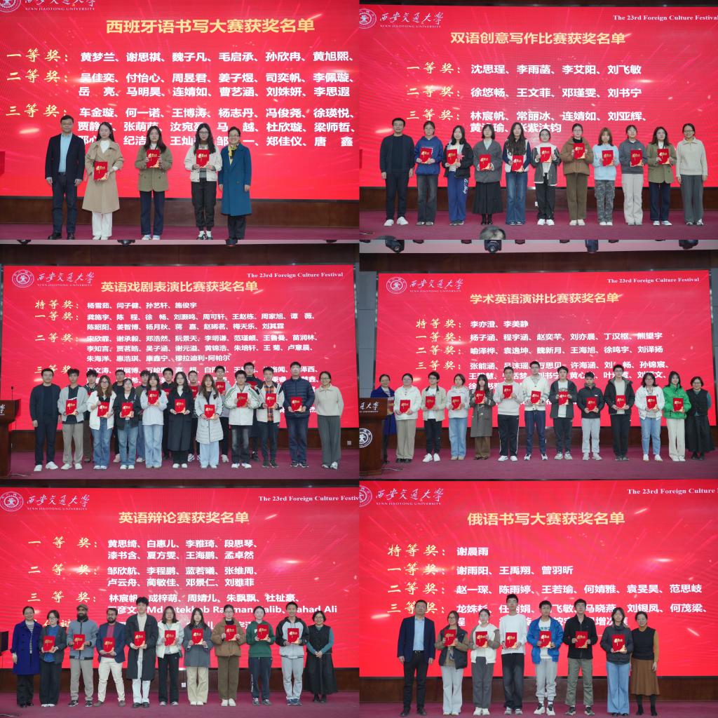 ”英语口语视频大赛、西班牙语书法、朗诵、风采大赛,法语演讲、朗诵、风采大赛,2025年外研社国才杯英语口译、笔译大赛校内选拔赛,游园晚会等23项精彩活动,吸引了5000余人次本研学生参与,超500余人次获奖。