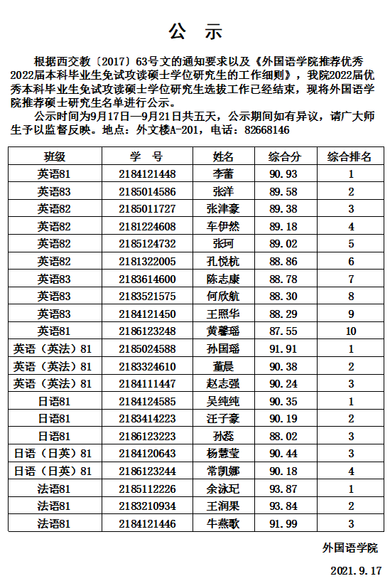 污污漫 2022届推荐硕士研究生名单公示