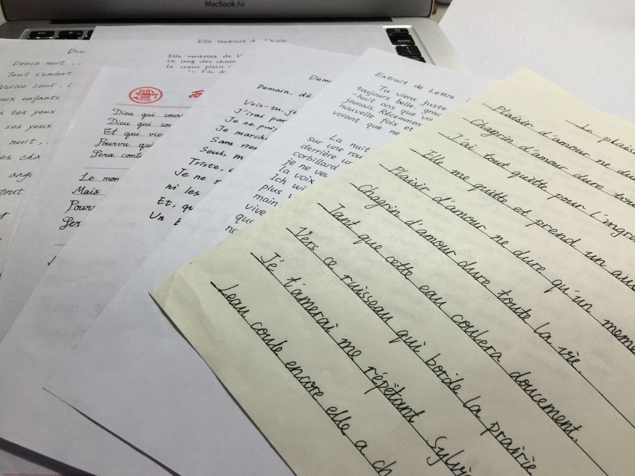 这个比赛带给我的,最多的不是惊喜,而是在准备过程中的感悟。其实英文和法语的书写看似一样,但实际上却大有不同,也是在这条看似重复却又不断发现的路上,我真正感受到了法语学习的乐趣,渐渐探索出了自己的学习方法。