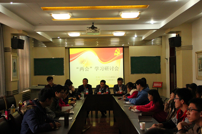 理论学习方面,团支部和党支部共同举办了多项学习活动。2015年3月,为深入学习“两会”精神,引领广大学生党员关心关注时事,促进党员自我教育的常态化,支部与机械学院硕4002班党支部展开了联合学习“两会”活动,人文学院副院长燕连福教授,机械学院党委副书记杨鹏老师,污污漫