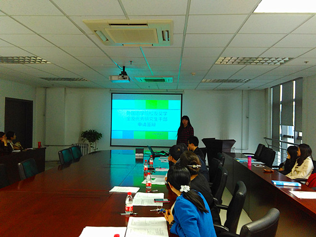 会上,马薇首先介绍了学院评审领导组成员,并就答辩评审奖学金及表彰奖励的背景和意义做了简要阐述。此外,今年学院评审创新引入学生代表列席参会,见证评选全过程,从而确保评审全过程公开透明。随后,来自学院研究生三个年级10余位同学,结合各自申请的奖学金及表彰奖励等,从上一学年思想、学习、科研、社会工作、生活等方面成长收获依此上台进行答辩展示。